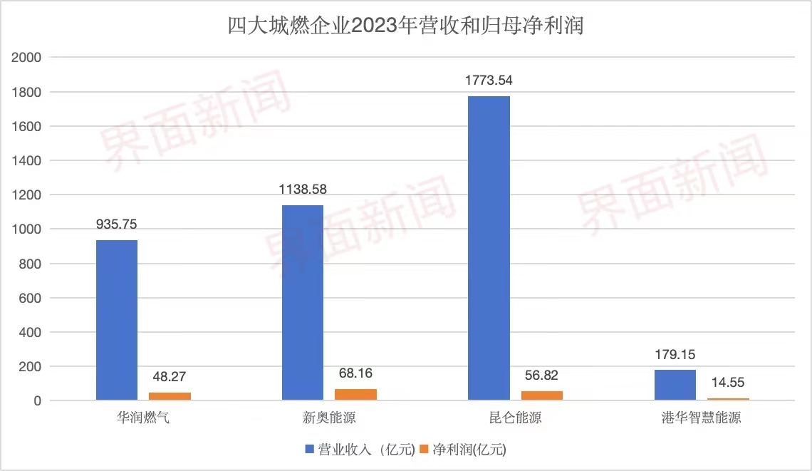 其中,新奥能源(02688.HK)股东应占净利同比增长16.2%至68.16亿元,净利位居四大城燃企业之首;昆仑能源(00135.HK)次之,股东应占净利约56.82亿元,同比增长8.7%。