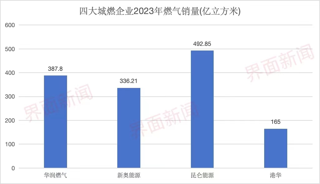 同期,华润燃气天然气销量为387.8亿立方米,同比增长8.1%;天然气等产品销售收入为826.25亿元,同比增长约10%,占到总收入的八成以上。