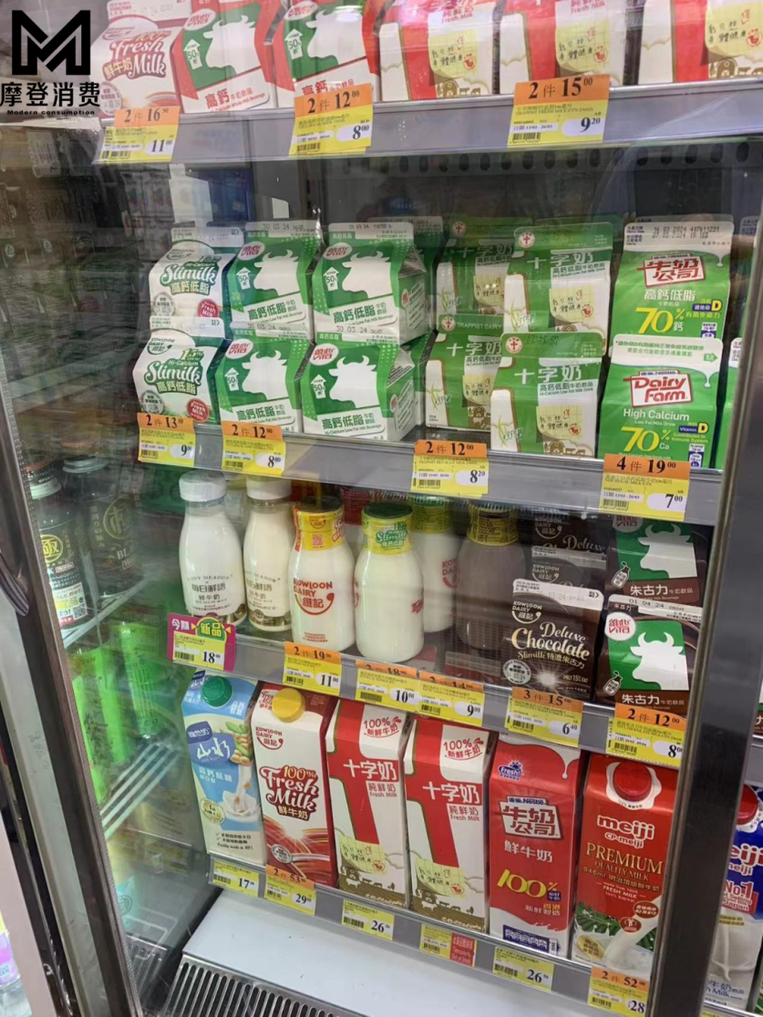 说道这,她给「摩登消费」发过来一张摆满鲜牛奶的货架照片。照片显示新品每日鲜语售价18港元;维记鲜奶2瓶仅19港元;其他鲜牛奶和高钙奶更是有12港元、15港元和16港元2盒的低价。