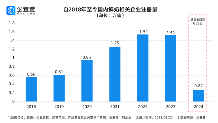 一时间,从业者加速进入鲜奶赛道,行业变得异常拥挤。企查查数据显示,国内现存鲜奶相关企业6.85万家。
