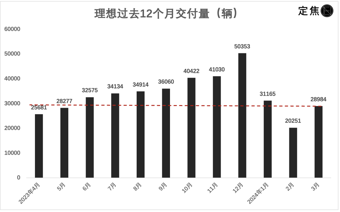 按照理想的原计划,3月的交付量应该在5万辆左右,市场预期6万辆。最终结果是只交付了28984辆,相比预期有很大差距,这是过去一年来较差的月度交付成绩。