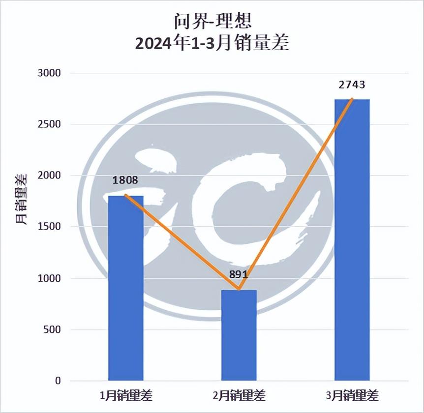 1月,问界超过理想1808辆,2月理想追回来不少,仅差问界891辆,但到了3月距离再次拉大,问界超过理想2743辆。
