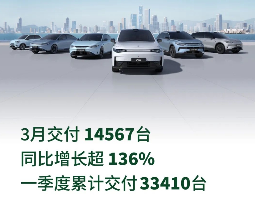 吉利汽车集团在3月份售出150835辆,其中新能源渗透率约为30%,累计售出44791辆新能源车。其中,银河系列和几何系列分别售出10185辆和12882辆,分别环比增长12%和23%;极氪品牌在3月份交付13012辆,同比增长超95%,全新极氪001和极氪007均起到了关键作用。