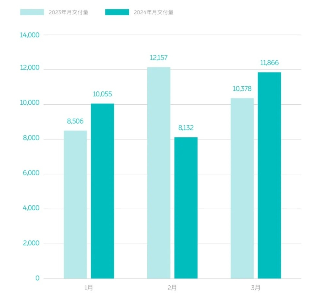 除了AITO问界和理想汽车,零跑、蔚来和小鹏也公布了3月交付量,分别为14567辆、11866辆和9026辆。