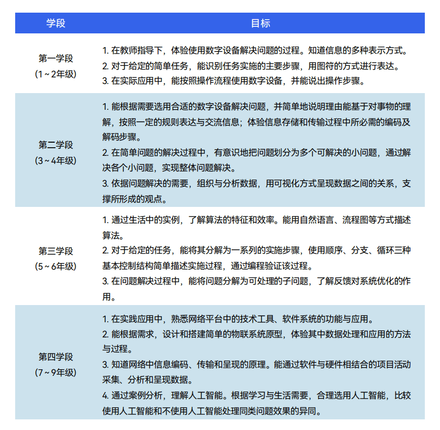 在课程标准化和体系化方面,目前我国多数少儿编程机构并未对现有的计算机科学体系进行进一步整合,学校与学校之间也尚未形成统一、完善、清晰的编程教育课程体系。课程参考标准大都来源于美国计算机科学教师学会2011年发布的《CSTA K—12年级计算机科学标准》,内容延展性有待提高。不过,根据教育部《义务教育信息科技课程标准(2022年版)》来看,目前国家正在在高度重视编程等信息技术课程的标准化和体系化,已在课程目标、内容、标准等方面给出相关指导建议。