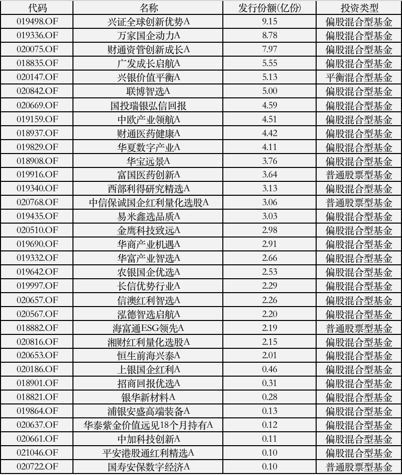 此外,万家国企动力、财通资管创新成长、广发成长启航、兴银价值平衡首募规模均超过5亿元。