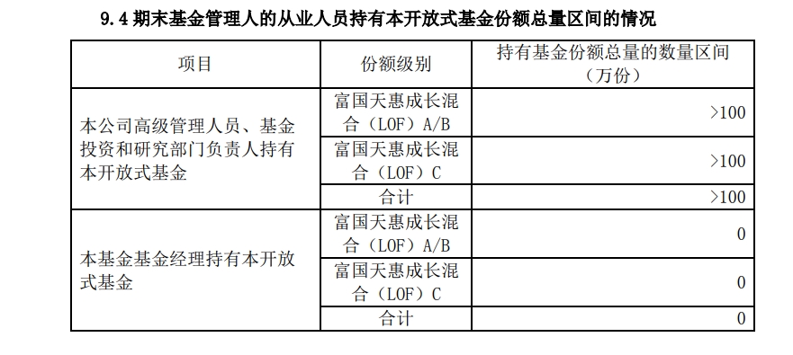 作为一只成立超18年的老基金,富国天惠成长混合是朱少醒管理的唯一一只基金。该基金2022年报数据显示,朱少醒并未持有A/B份额。到了2023年中报时,朱少醒自购的富国天惠成长混合A/B份额为10-50万份。而到了2023年末,朱少醒对富国天惠成长A/B的自购份额又变为0。