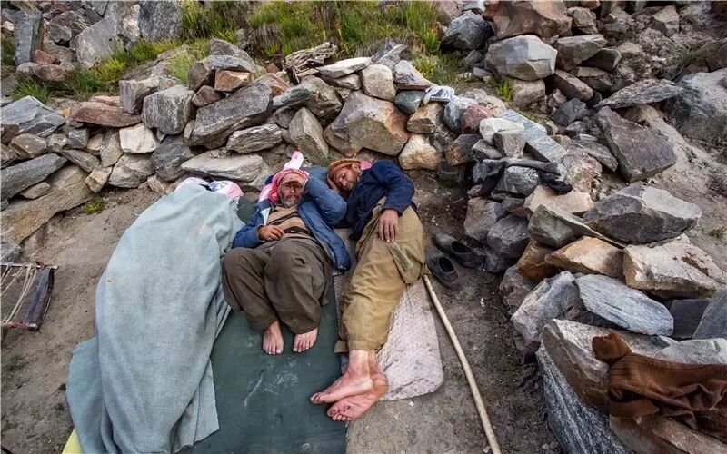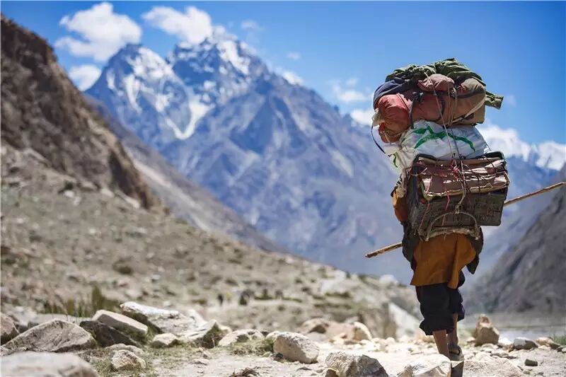阿包从20岁开始当背夫,已经在喀喇昆仑山里当了33年的背夫。也许以前他像其他的年轻背夫一样,精神抖擞,热情洋溢,当结束每天的工作后,围在塑料布搭成的帐篷里,唱着巴尔提斯坦的民歌《我的女朋友很漂亮》。