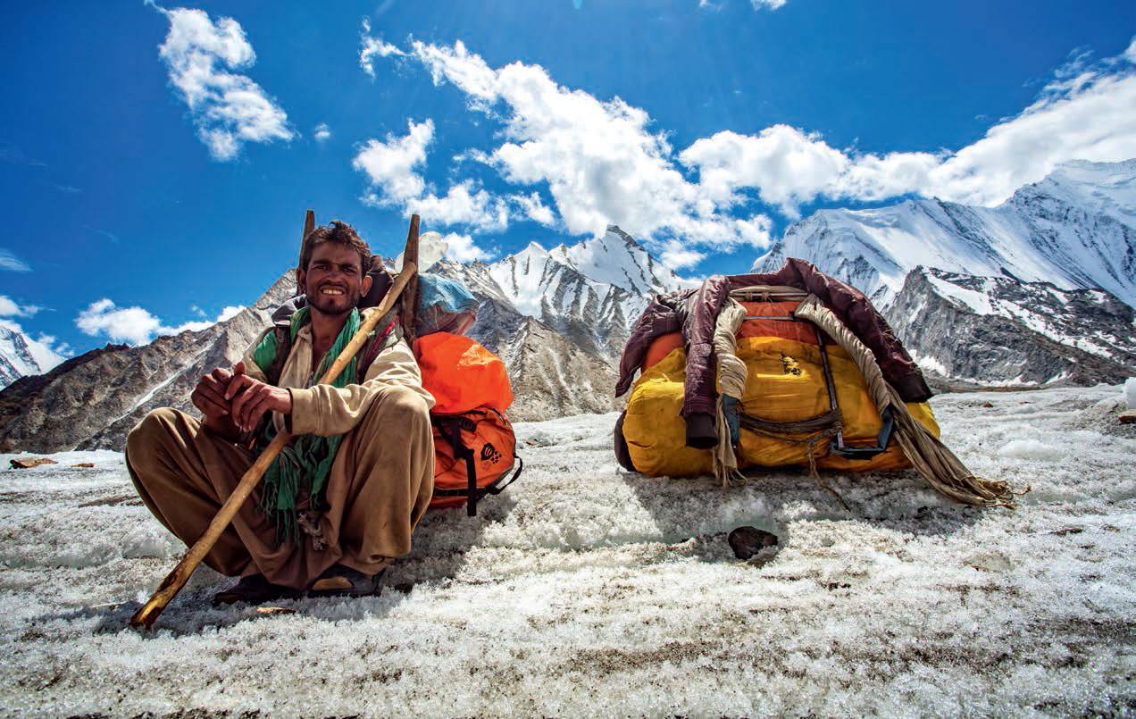 在巴尔托洛冰川休息的背夫。现在已经铺设了翻越Gondogoro La 的路绳,之前,所有前往K2 大本营徒步的徒步者都需要原路返回。