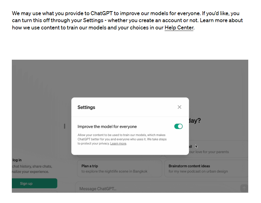 当然,OpenAI也给到了一个隐私保护选项:公告中,OpenAI表示,ChatGPT“可能会使用用户提供的内容来改进模型”,但如果用户不愿意,也可以通过“设置”关闭这项数据收集功能。