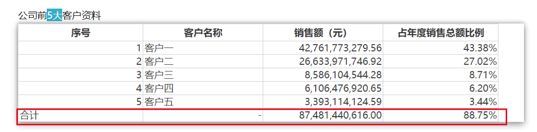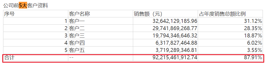 2023年,来自前五大客户的销售额达到874.81亿元,占年度销售总额比例高达88.75%,较2022年的87.91%比例更进一步。