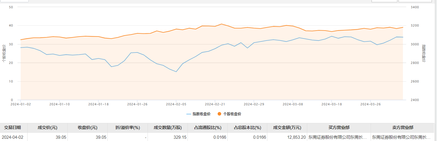 中国神华4月2日大宗交易成交329.15万股,成交额1.29亿元,占当日总成交额的9.19%,成交价39.05元,较市场收盘价39.05元持平。
