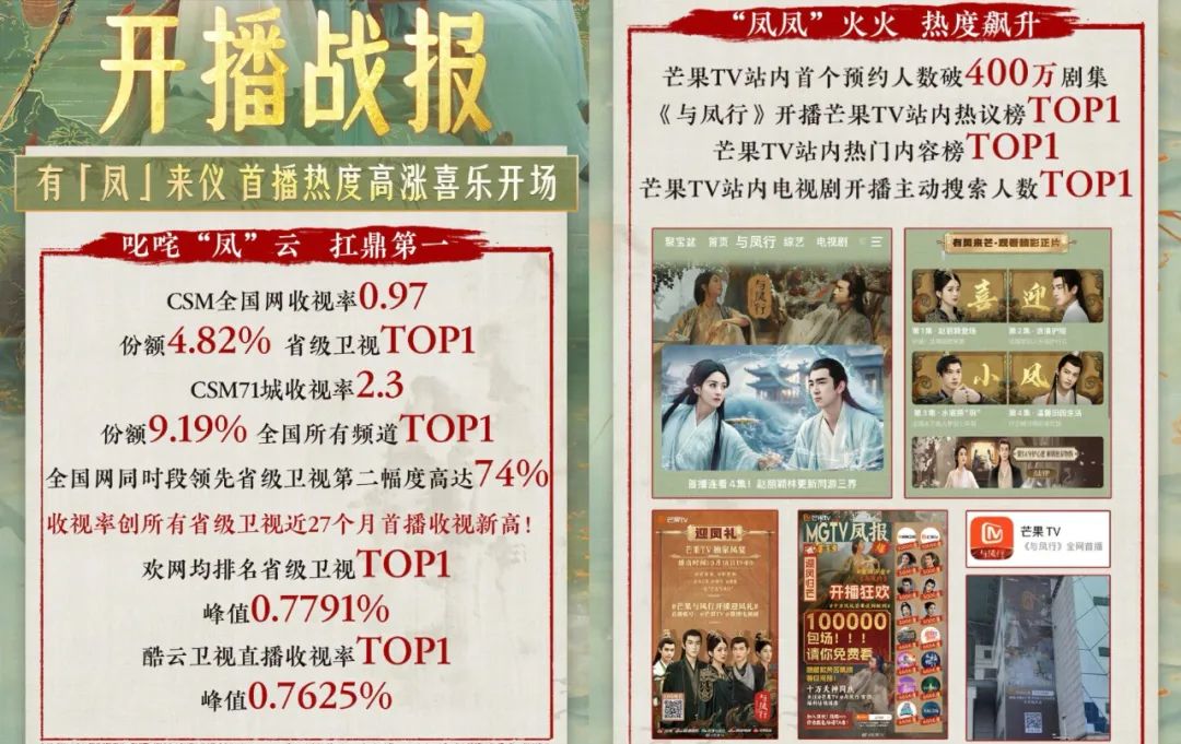 拿美团外卖选中《与凤行》为例,当然是看重了《与凤行》兼具话题流量与传播效应的商业化势能。该剧开播后收视率一路"凤"涨,成为芒果TV站内首个预约人数破400万剧集,且创下所有省级卫视近27个月首播收视新高,说实话,这样的平台超头部剧集项目一年也没几部,品牌一定要抓住稀缺的投放机会。