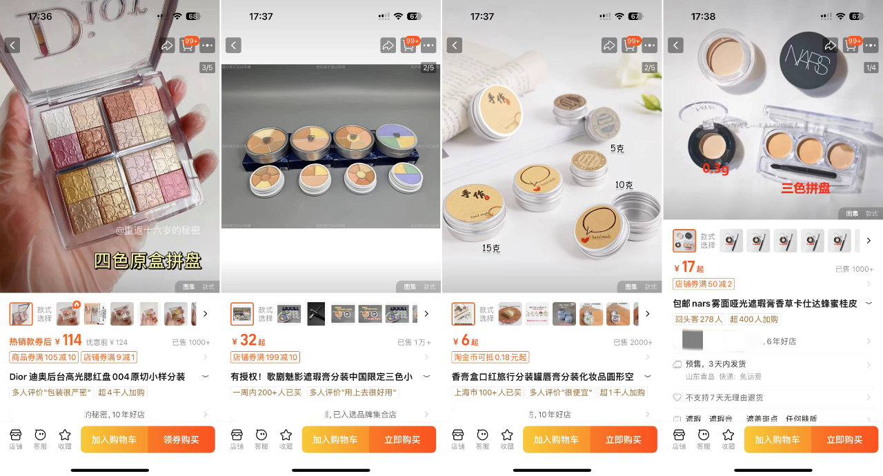 抖音博主@十*点曾专门发布视频打假,据其跟多个品牌方确认,“阿玛尼根本没有出过塑料包装的粉底小样,MAC也没生产过1.5g大小的生姜高光,YSL更是没有上架过迷你小金条……”