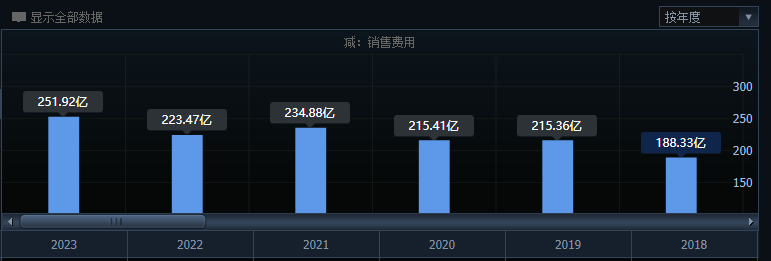 数据显示,2023年前三季度,伊利股份销售费用支出为172亿元,较2022年同期降低1亿元,销售费用率为17.66%,同比下降了0.84个百分点。