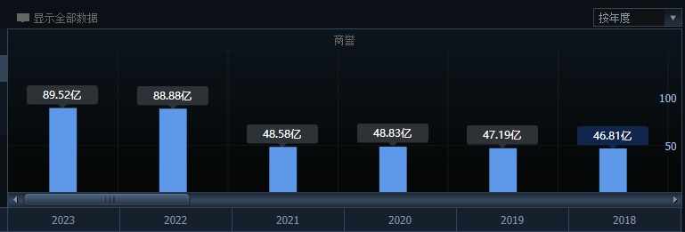 另一方面,频繁的对外收购还让蒙牛积累巨额的商誉值。据统计,2017年以来,蒙牛对外收购所动用的金额便超过100亿元。截至2023年年末,蒙牛乳业商誉价值高达89.52亿元,较2017年同期(45.33亿元)增长超过44亿元,另有无形资产153.51亿元。