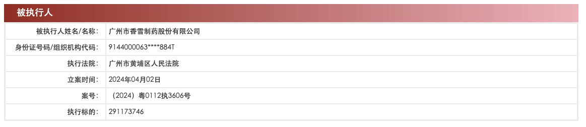 中国执行信息公开网显示,4月2日,广州市香雪制药股份有限公司及其大股东广州市昆仑投资有限公司,以及王永辉、陈淑梅新增一则被执行人信息,执行标的2.91亿余元,执行法院为广州市黄埔区人民法院。