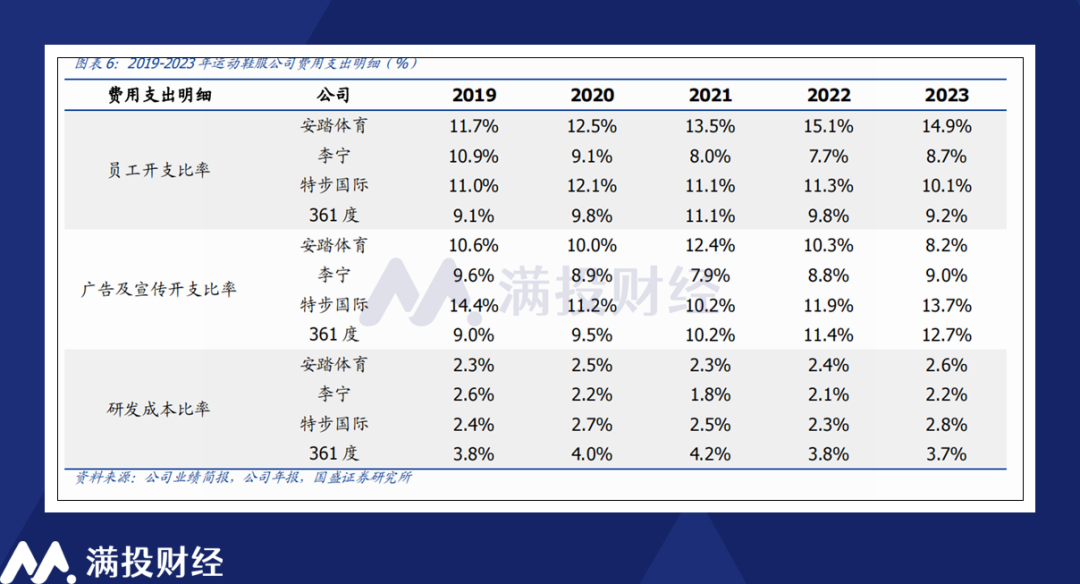 而在费用方面,上述企业多数存在市场竞争环境加剧,产品营销投入加大的情况。从2023年的广告开支来看,除了安踏体育外,另外三家公司均有不同程度的提升。