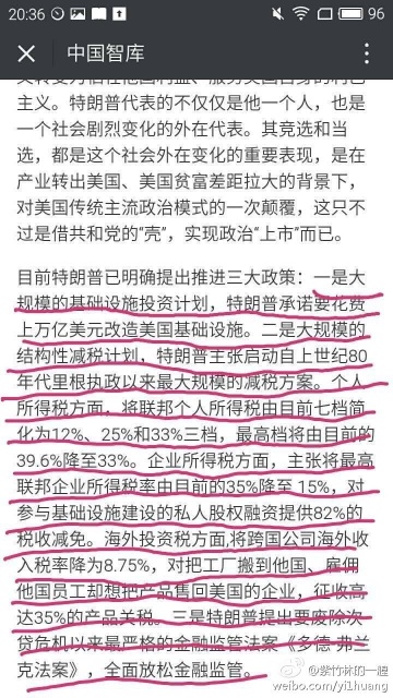 特朗普能不能成为他渴望成就的伟大总统,不去臆测,但显而易见,他在做一件变革的大事。他带领美国人正在做巨大的改变,英国人脱欧为了变,意大利和法国可能会变,这是个开始。认识到这一点,才是宏观判断的关健点。