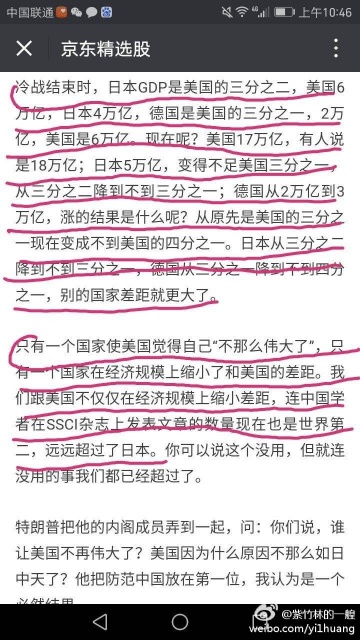不轻意悲观,也不轻易乐观。中国的发展关健点还在自已,美国已经在变革,特朗普的所作所为都是一个中心两个基本点:以美国再次伟大为中心,买美国货,雇美国人为两个基本点。