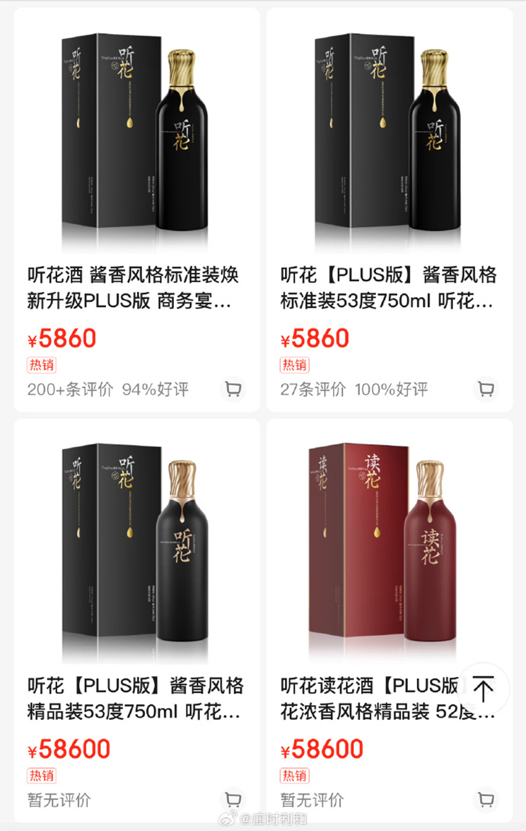听花酒最大的善念,就是不坑穷人。有网友分析道,5.86万元一瓶听花酒,能买3000瓶二锅头。花同样的钱,最大限度减少酒精摄入,效果等同于保肝护肝。