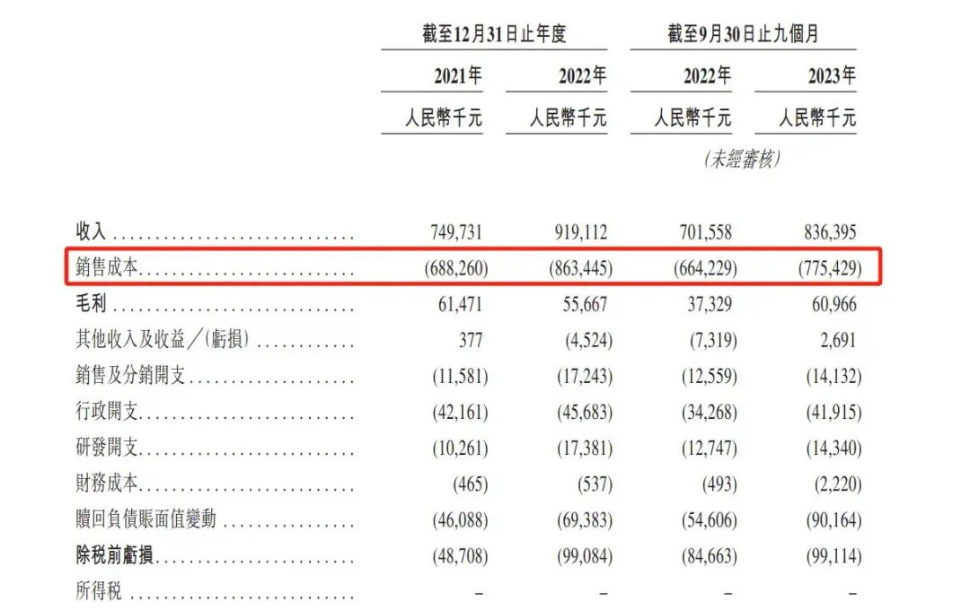 2021年、2022年、2023年前三季度,公司二手电子产品采购成本占总收入约为78.3%、80.9%和81.8%。