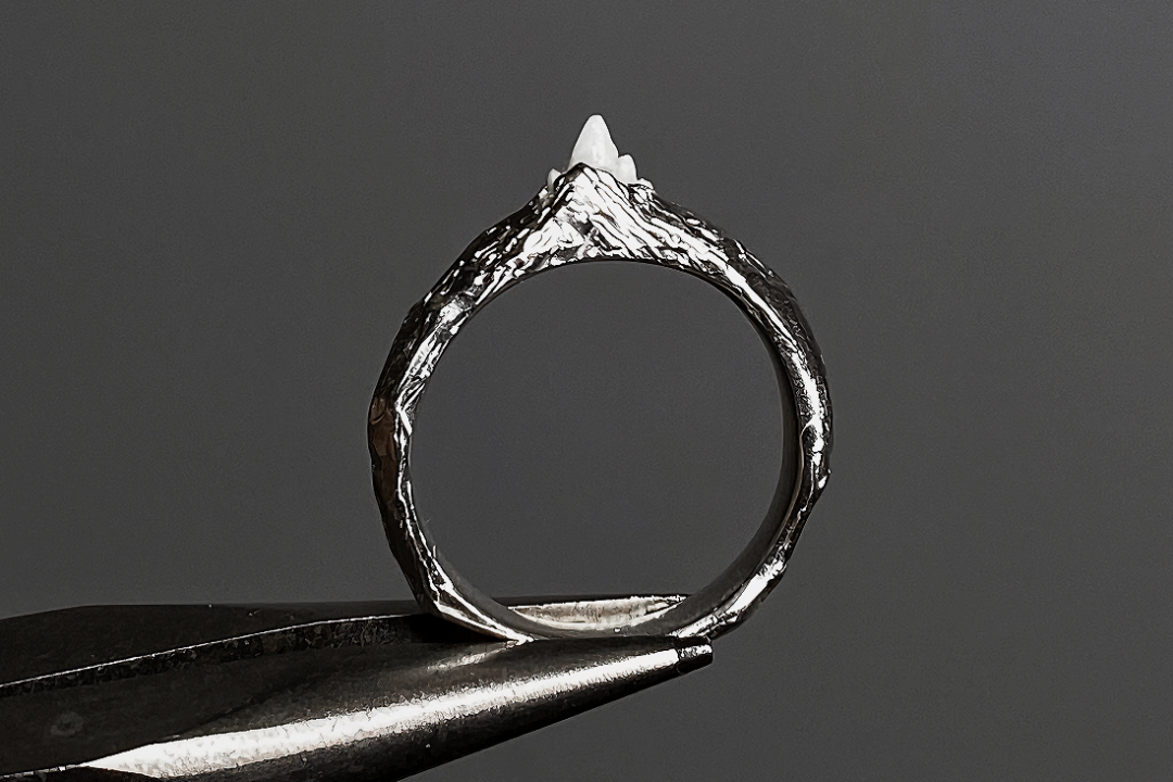 “私人订制款是设计一些店铺里没有的款式,根据顾客的要求来设计,但是关于牙齿的设计不是所有设计都能做,因为要考虑到镶嵌牙齿的稳固性和美感。有顾客问过骨灰或毛发的定制,但是银饰没办法和骨灰或毛发结合,因为质地不稳定,比如毛发太软,骨灰容易粉碎。”