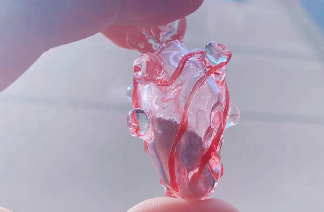 在这样一场简单的丧葬仪式中,毛毛为“小草莓”花费了近1000元,但毛毛对惊蛰研究所表示自己觉得“很值”:“一方面以更体面正式的方法处理了身后事,更重要的是,‘小草莓’的骨灰保存了下来,后来我找到一家玻璃烧制工艺的工作室,将部分骨灰封进了这颗心形玻璃中,希望它来世可以拥有一颗健康的心脏。”