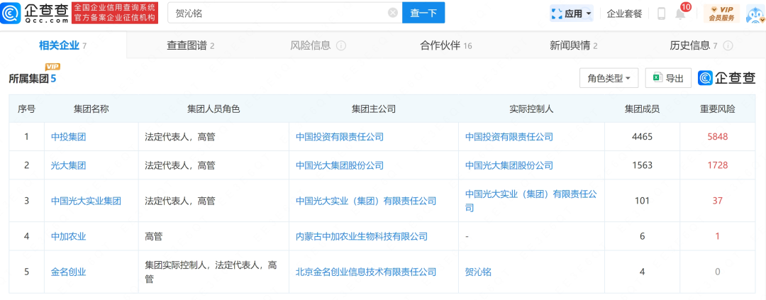 “接盘侠”贺沁铭来头也不小。企查查显示,贺沁铭在中投集团、光大集团体系的公司中都担任高管的角色,其担任总经理的内蒙古光锋私募基金,大股东即是光大集团。