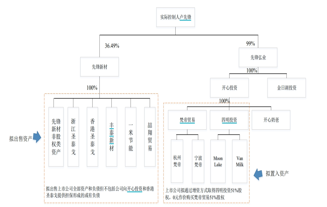 2015年,先锋新材斥资6300万元收购盖世汽车60%股权,借此切入汽车零配件信息服务行业;同时卢先锋开始谋划重大资产重组,拟将自己预先收购的澳大利亚规模最大的奶牛农场企业VDL装入上市公司。