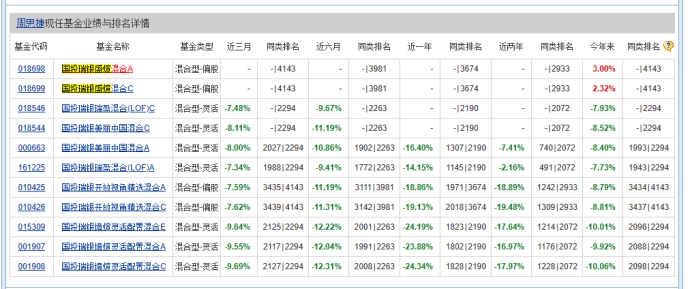 周思捷旗下基金业绩表现 资料来源:天天基金网