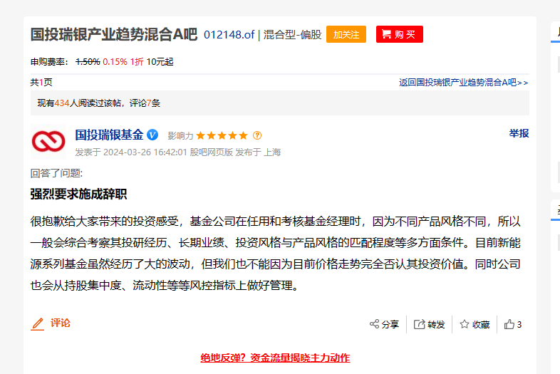 由于回报不佳,不少基民在基金吧里怨声载道,更有甚者直接要求施成辞任基金经理。