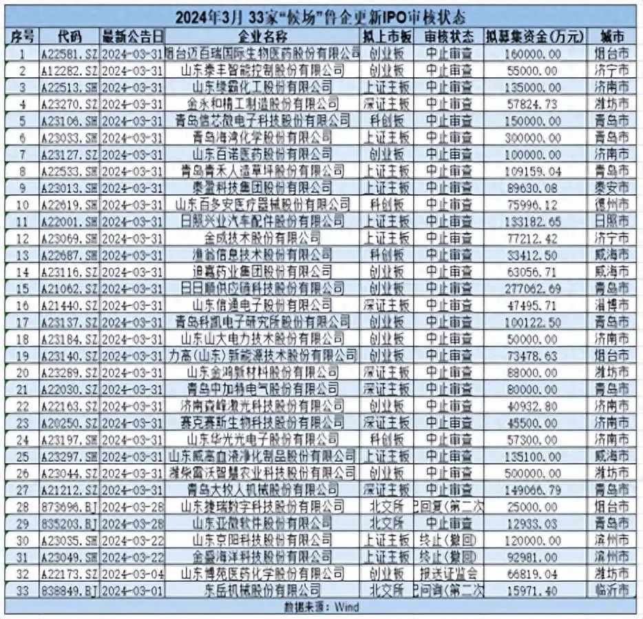 ● 33家“候场”鲁企更新IPO审核状态