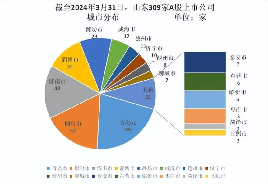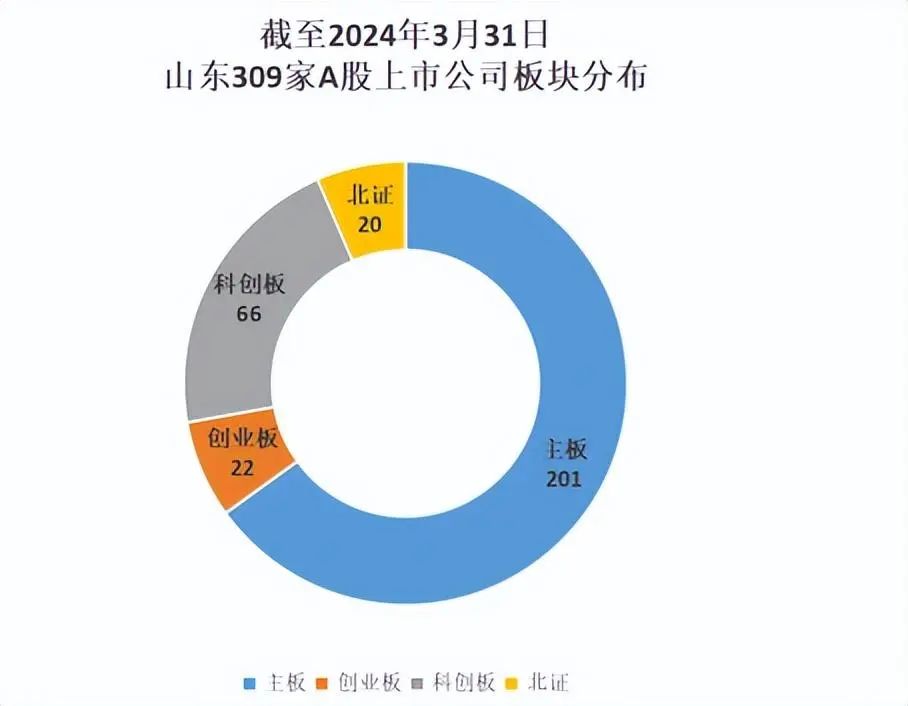 截至3月末,山东A股上市公司有309家,其中沪深主板201家、科创板66家、创业板22家、北证20家。