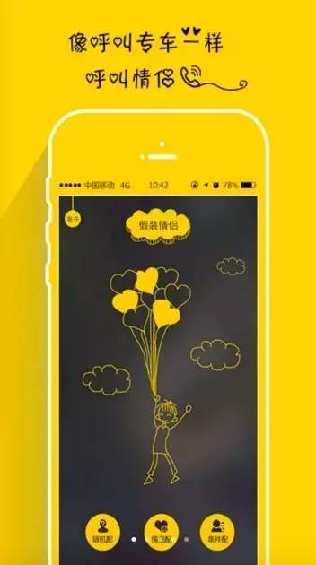 三声下载了这款应用,进入“假装情侣”的app,第一眼看到的是一个标语“像呼叫专车一样呼叫情侣”。注册过程非常简单,只需输入手机号或邮箱以及密码,也可以用微信、微博等其他社交网站登录,之后只需确认性别,上传任意图像,无需填写其他信息。
