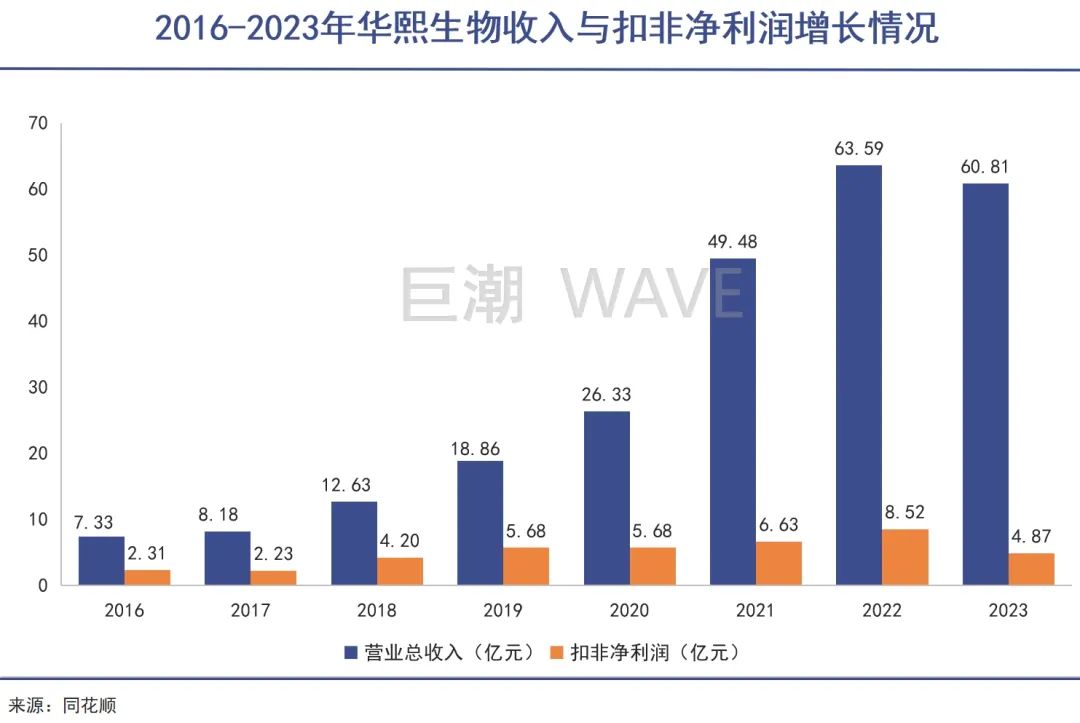 最典型的莫过于华熙生物,在其他两家仍然保持一定增速的同时,规模体量巨大的华熙开始逐渐失去成长性。2023年,华熙生物业绩压力没有改善,终于收获了第一个营收和利润增长的双负数。