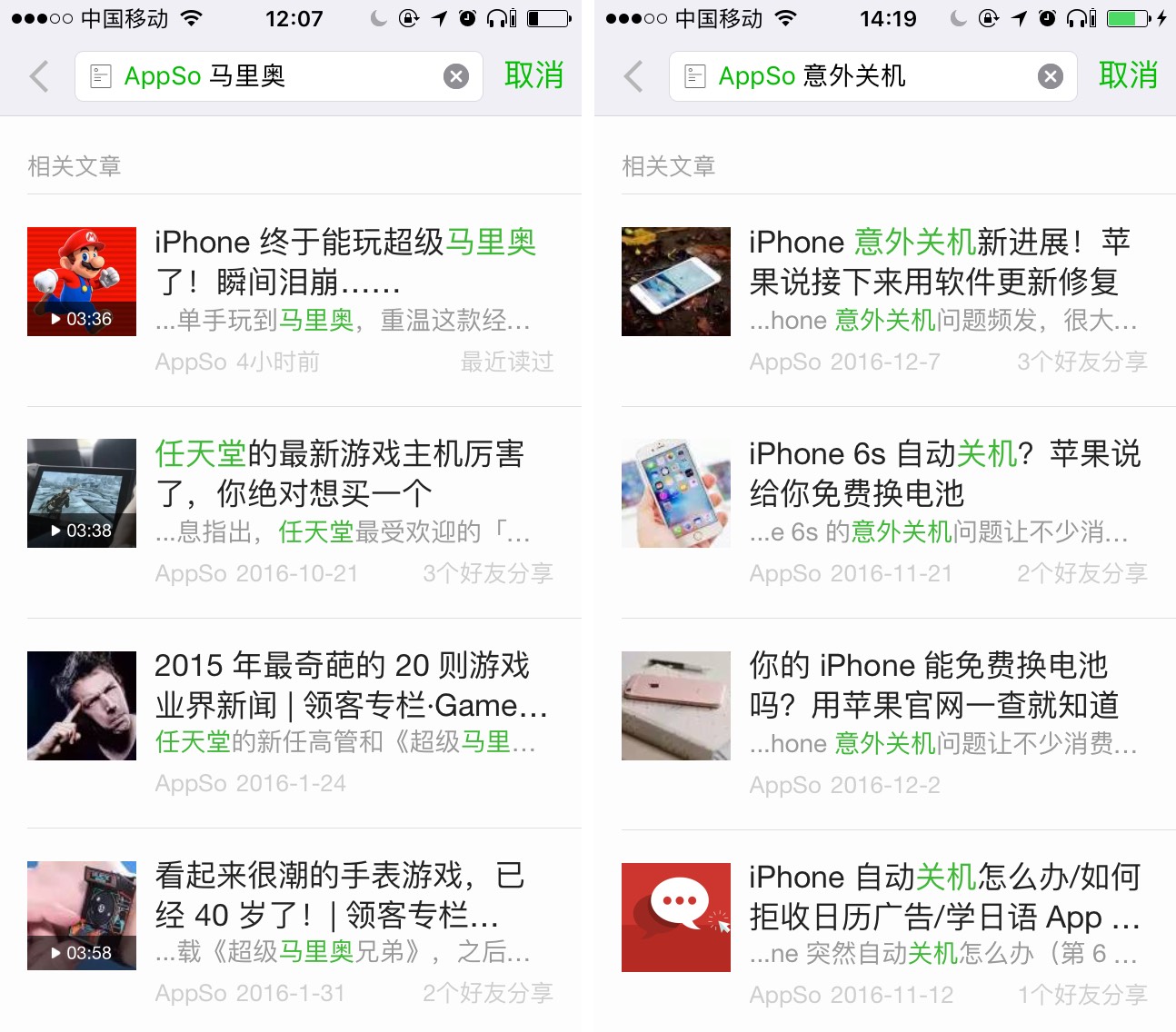 尝试输入「马里奥」就能找到 Super Mario Run 的下载教程,输入「意外关机」,就能看到手机意外关机的相关报道,精准地找到自己想要的消息。