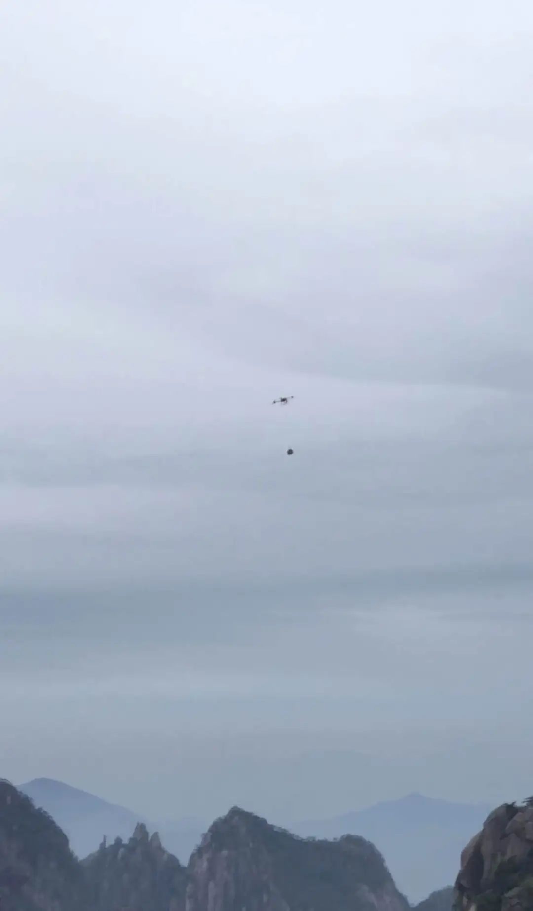 黄山的群峰上空,有无人机在运货 / 定焦摄