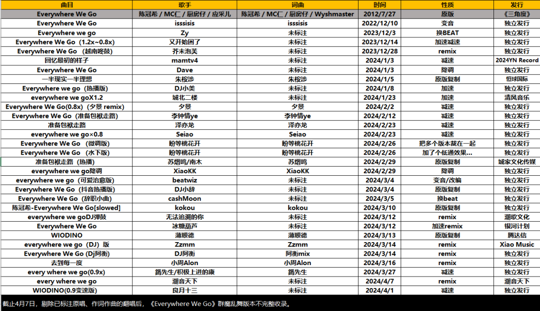 而2023年末抖音话题播放量超过11.6亿的《Everywhere We Go》也未能逃过一劫。