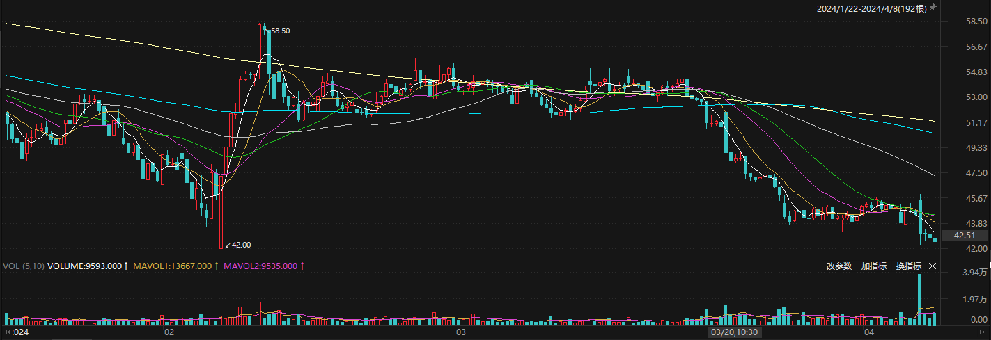 4月8日,百克生物(688276.SH)股价跌4.49%,股价报收42.5元/股。界面新闻注意到,3月19日至4月8日,该股票价格连续走低,区间跌幅约22%。