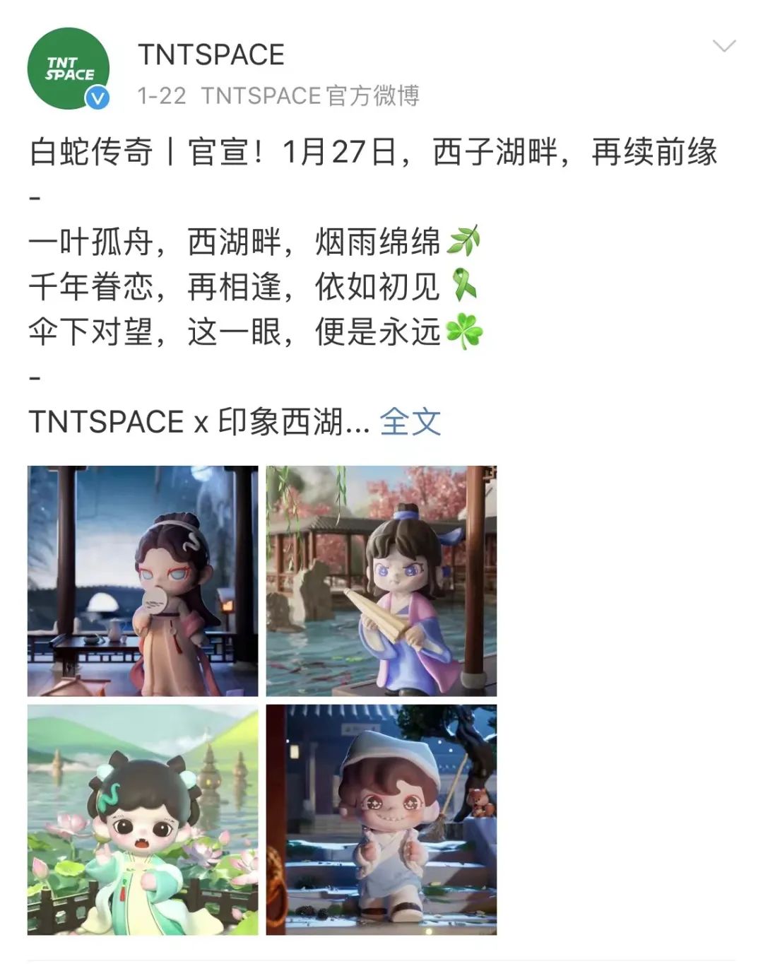 23年,TNTSPACE就因此尝试了“文旅+”,在杭州西湖景区联动发售多IP联动产品——白蛇传奇盲盒。