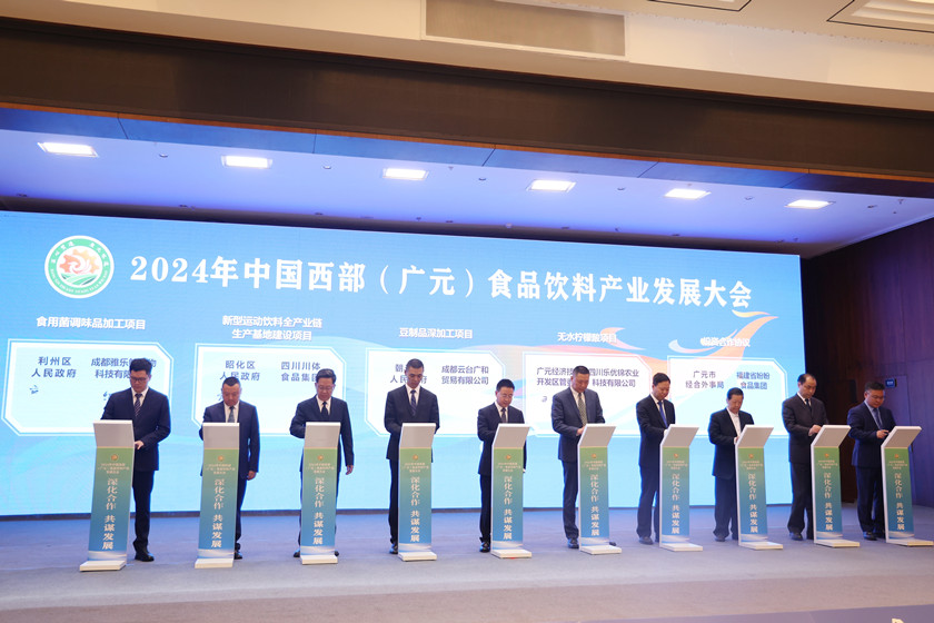 在8日下午举行的2024年中国西部(广元)食品饮料产业发展大会上,苍溪县果汁果酒农文旅融合等9个项目分两轮展示签约。