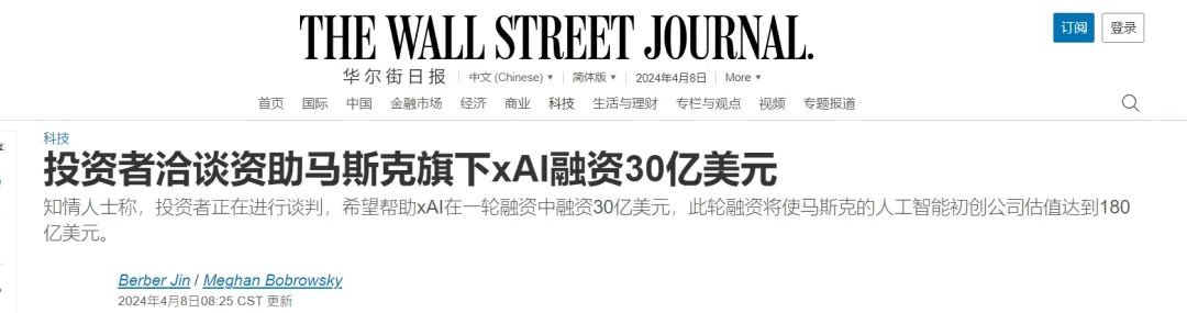 据外媒4月7日报道,成立不到一年的xAI即将进行新一轮融资,规模约为30亿元,估值有望达到180亿美元。
