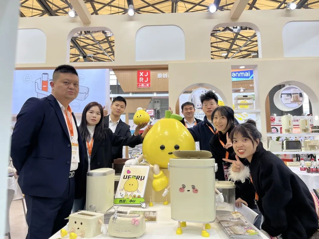 于是,团队采购了配件,测算了要13元,配件成本远高于垃圾桶本身。这种产品成本高,又难有护城河,要不要投产?团队在激烈讨论之后,还是决定做,并设计了形象IP运用到产品上。没想到在今年3月的上海展会上受到很多客户的关注,“完全不够卖”。