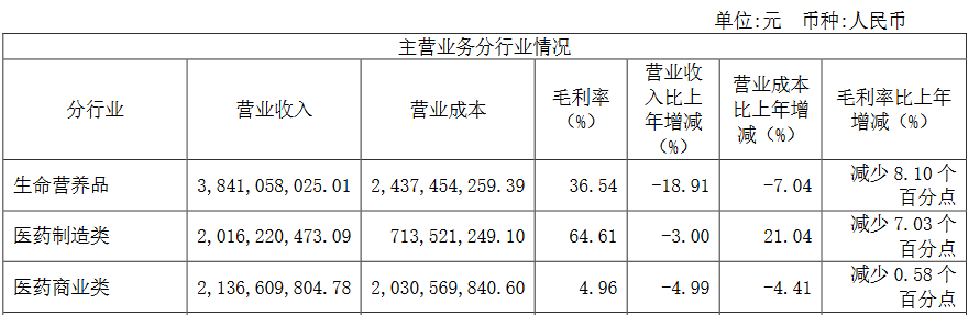 根据2023年半年报披露,浙江医药的生命营养品业务实现营收16.26亿元,营收占比为41.29%;医药商业类业务的营收11.24亿元,占比为28.53%;医药制造类业务的营收为11.07亿元,占比为28.11%。可以看出,这家公司目前仍以营养品业务为主,其他两项业务的贡献比较平均。
