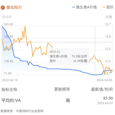 一直以来,维生素价格的波动都会影响维生素企业的利润变化。事实上,浙江医药的利润在2014年也发生过同比下滑超过50%的情况。当时,全球养殖业低迷,维生素需求减退,维生素的价格出现下降。