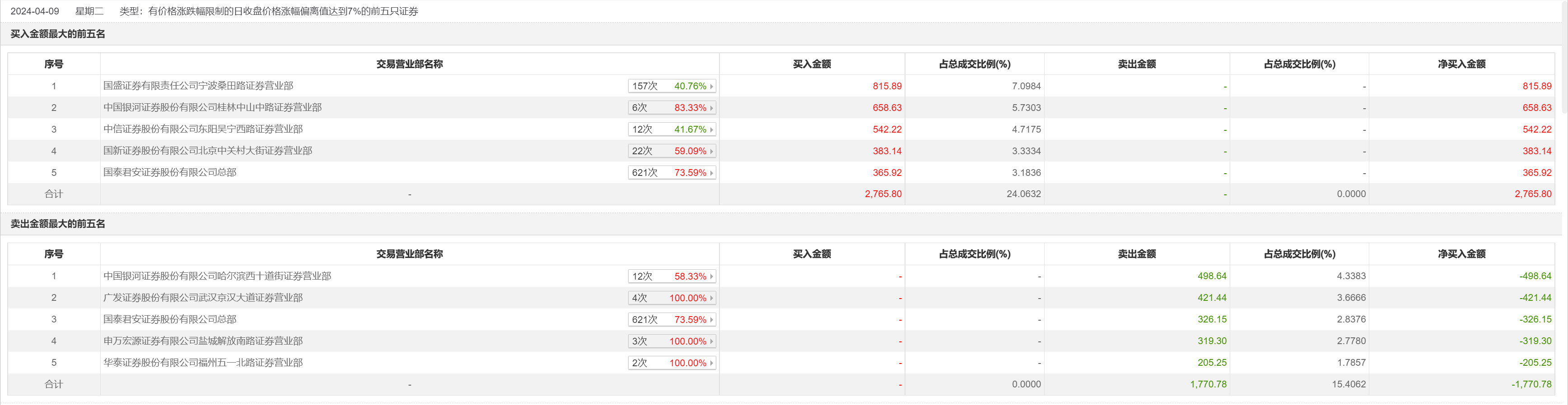 具体来看,知名游资现身龙虎榜,宁波桑田路(国盛证券宁波桑田路证券营业部)、中国银河证券桂林中山中路证券营业部分别买入815.89万元、658.63万元;中国银河证券哈尔滨西十道街证券营业部、广发证券武汉京汉大道证券营业部分别卖出498.64万元、421.44万元。