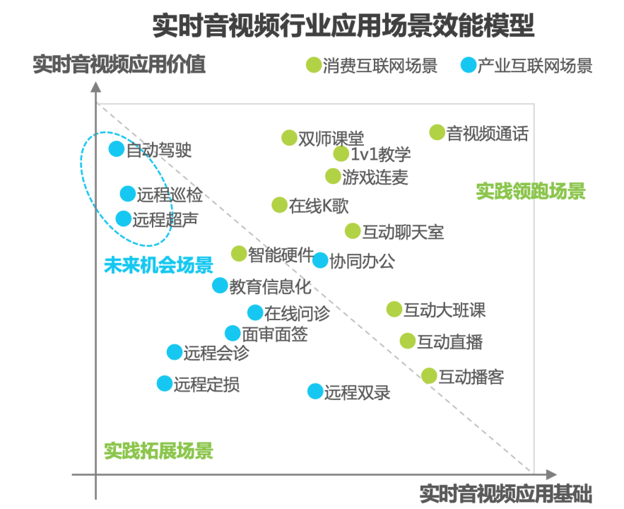 根据艾瑞咨询报告显示,在目前实时音视频领域,领跑场景依旧停留在C端,在实际生产过程中,产业数字化的价值微乎其微。