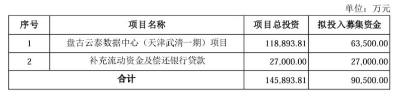 其中,盘古云泰数据中心(天津武清一期)项目拟使用本次募集资金6.35亿元,项目建设期为18个月。该项目建成后,奥飞数据将部署约5000个机柜。