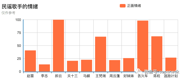 首先是情绪分析,通过对这些歌词的自然语言处理,我知道了不同歌手们吟唱的到底是开心还是不开心的事情: